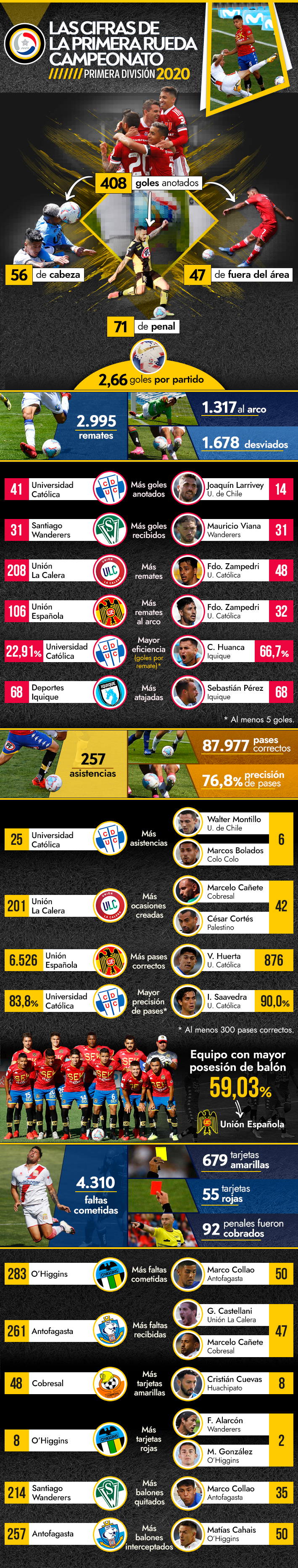 El jugador con más faltas, el club con mayor posesión y el desglose de los 408 goles: Las cifras de la primera rueda del Torneo