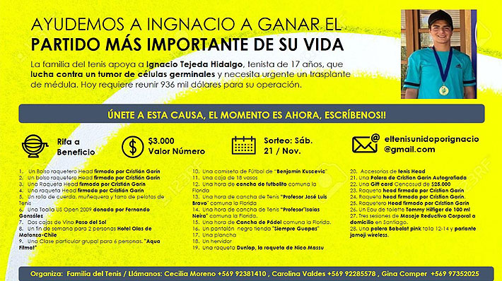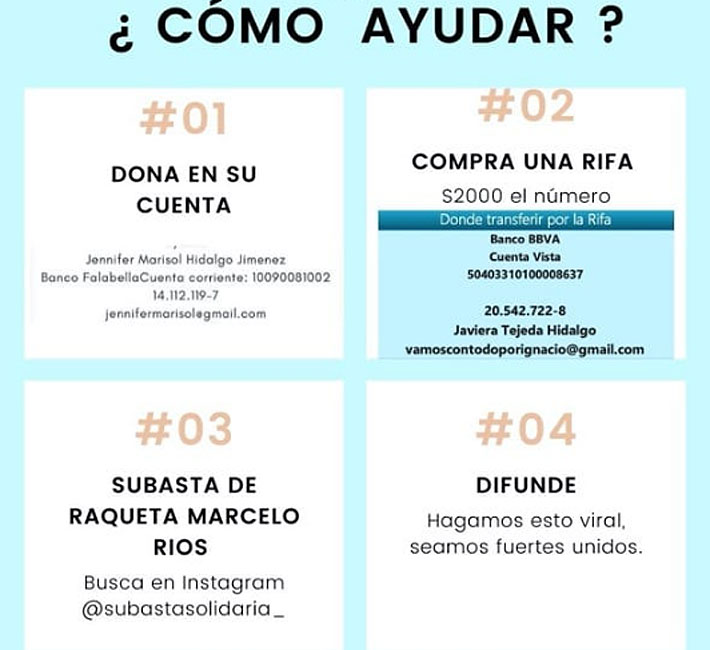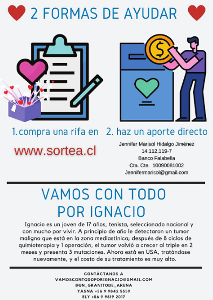 "Desde un principio teníamos la idea que se podía negociar un plan de pago, opción que nos permitiría darle el mejor tratamiento a Ignacio. Ante la negativa de MD Anderson (centro clínico) de optar a un plan de pago, nos vimos en la necesidad de hacer una campaña de aportes para poder cubrir el tratamiento, que considera aportes propios, de familiares y amigos y de la gente de buena voluntad", añade.