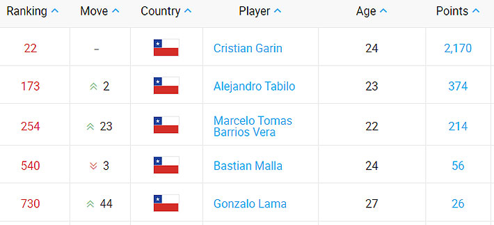 Otro que trepó casilleros fue Alejandro Tabilo. El "Flaco" perdió en cuartos de final y pasó del puesto 175° al 173°.