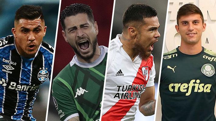 En Gremio está César Pinares, en Racing están Gabriel Arias, Eugenio Mena y el lesionado Marcelo Díaz, en River juega el defensa Paulo Díaz y en Palmeiras está Benjamín Kuscevic, quien aún no debuta por el club brasileño.