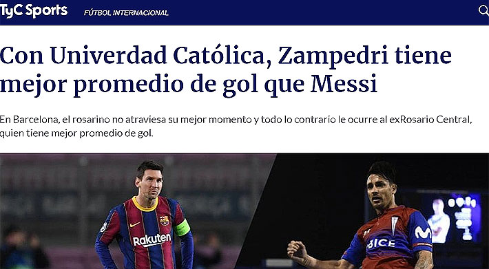 "Actualmente, Messi tiene un promedio de gol de 0,58 por partidos, mientras que Zampedri tiene un promedio de 0,65", añaden.