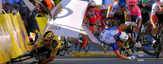 Pero sin dudas, lo cuestionable del accidente fue la participación de su compatriota Dylan Groenewegen. Fue sancionado con 9 meses por su responsabilidad. Jakobsen también cree que tuvo qué ver: "Se desvía de su línea y me cierra cuando lo paso. Creo que todos vieron eso. Si me hubiera cerrado un poco antes, habría podido frenar. No tengo la mente abierta para decir que él no tiene la culpa. Me cuesta entender por qué lo hizo. ¿No me vio? ¿Corrió demasiado riesgo? ¿Quería ganar a toda costa? Debería haber considerado las consecuencias. Somos seres humanos, no animales. Este es un deporte, no una guerra sin restricciones".