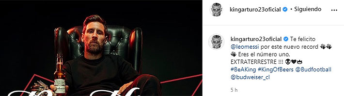 A raíz de este espectacular récord, el volante chileno Arturo Vidal, quien es amigo de Messi y ex compañero suyo en el Barcelona, le dedicó un mensaje a través de redes sociales.
