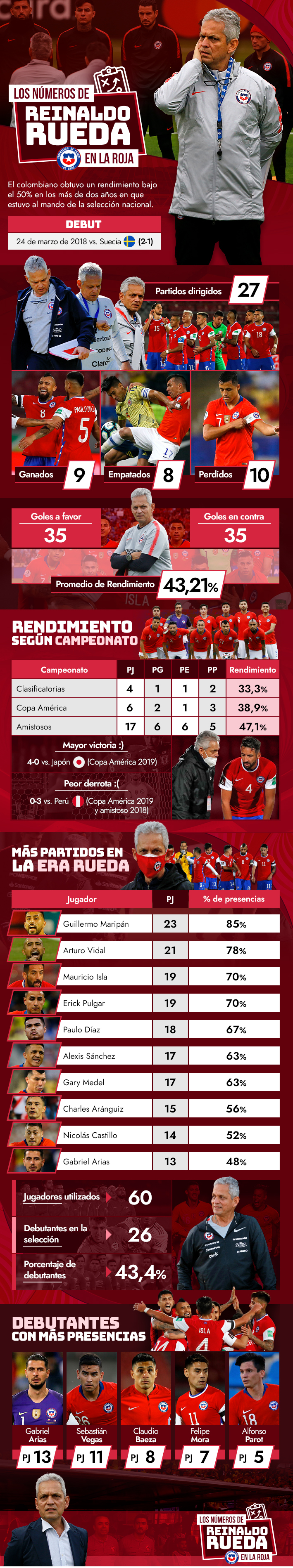 Los números que dejó Reinaldo Rueda durante su paso por la selección chilena