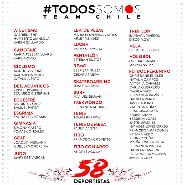 Los deportistas nacionales tomarán parte de 24 disciplinas diferentes en esta cita de los cinco anillos, en una cifra histórica. Además, por primera vez en este evento planetario, habrán más mujeres que hombres en la delegación criolla, principalmente por la presencia de la Roja femenina de fútbol con su plantel de 22 jugadoras.