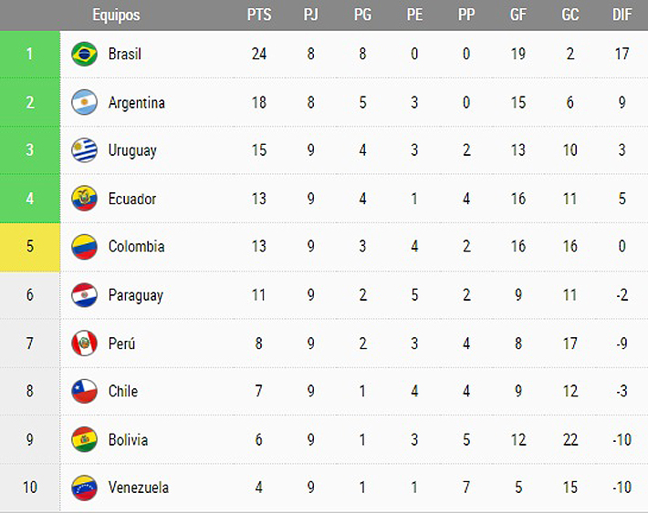 Mirando los últimos tres procesos, el corte estuvo entre los 24 y 26 puntos. Para Rusia 2018 el quinto fue Perú con 26 positivos. Para Brasil 2014 y Sudáfrica 2010, el lugar al repechaje lo obtuvo Uruguay con 25 y 24, respectivamente.
