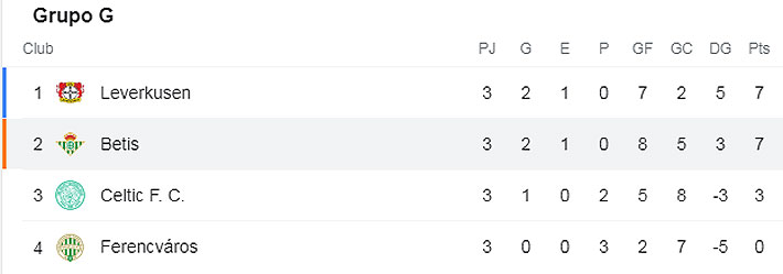 A falta de tres encuentros para el cierre de su zona, el elenco bético se ve sólido y tomó distancia de los otros dos equipos: El Celtic tiene solo tres unidades y el Ferencváros está último sin puntos.