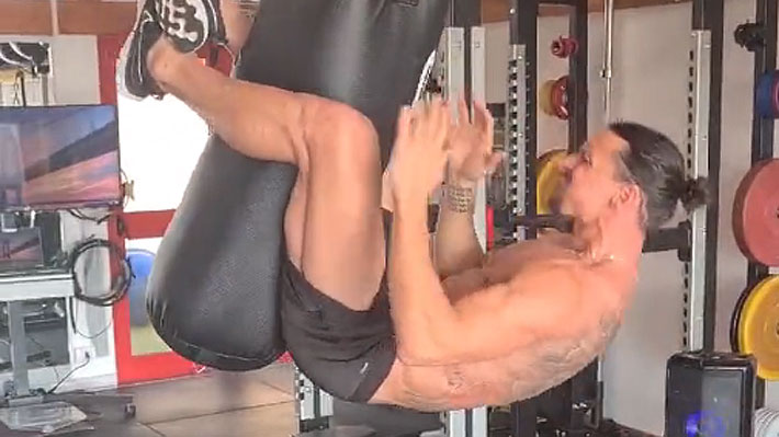 En medio de su recuperación, "Ibra", con 40 años, publicó un video de su espectacular entrenamiento, haciendo abdominales colgado de un saco de boxeo agarrado por los pies.