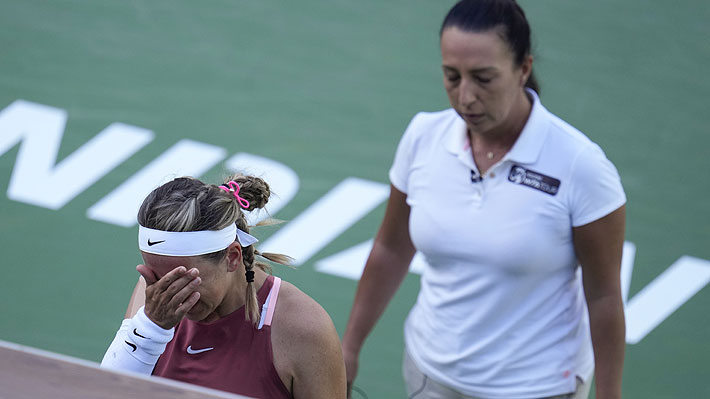 Con una hora de juego, Azarenka tenía una desventaja de 6-3 y 2-2 cuando interrumpió su servicio. La bielorrusa, de 32 años, hizo un nuevo intento de sacar pero se terminó llevando la mano al rostro y se agachó en cuclillas llorando, apoyada en la raqueta.