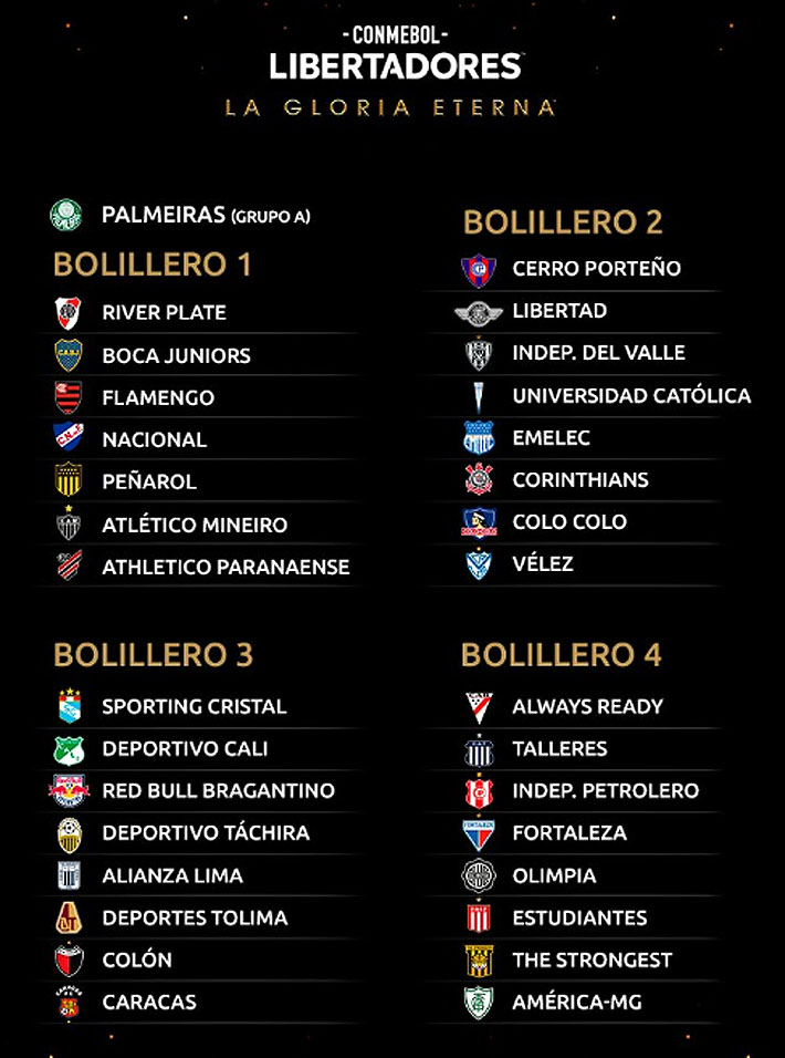 En la Libertadores, Colo Colo y la Universidad Católica quedaron en el bombo 2 y cada uno se medirá ante un equipo del bombo 1, 3 y 4.