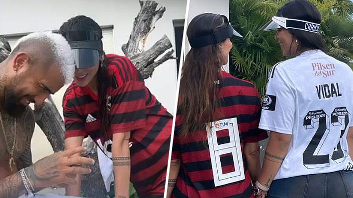 El video muestra a Vidal en su día de descanso y junto a él aparece su novia, quien posa precisamente con la camiseta del club de Río de Janeiro.