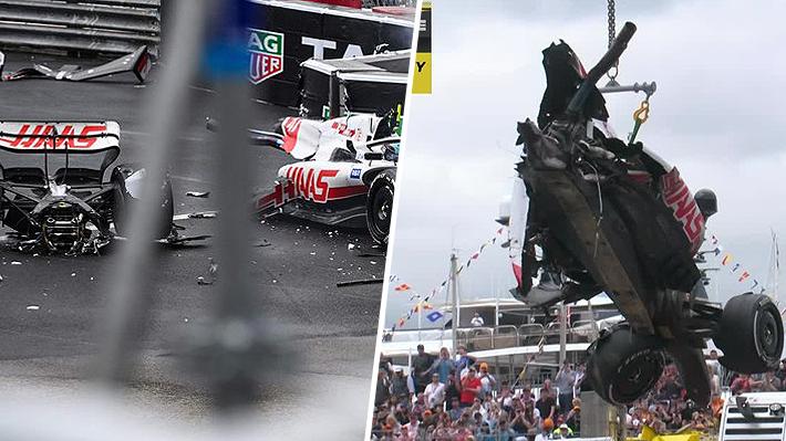 Después del aplazamiento se pudo iniciar la carrera y en la vuelta 27 apareció la bandera roja después del fuerte choque del alemán Mick Schumacher contra las barreras de seguridad. El auto se partió en dos.