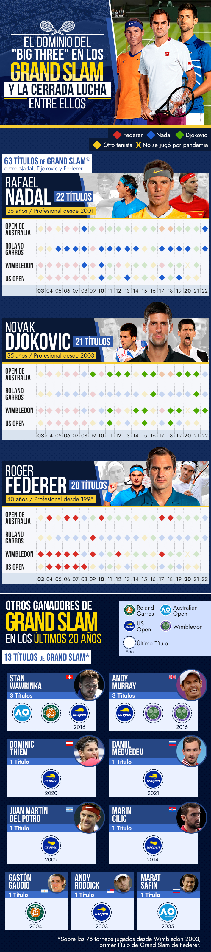 El dominio del "Big Three" en los Grand Slam y la cerrada lucha entre ellos: Revisa sus victorias desde 2003 a la fecha
