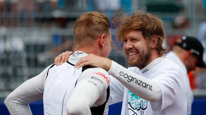 Vettel ha asumido una especie de papel de mentor de Mick desde que su compatriota se unió al equipo Haas en 2021, tras ganar el título de Fórmula 2.
