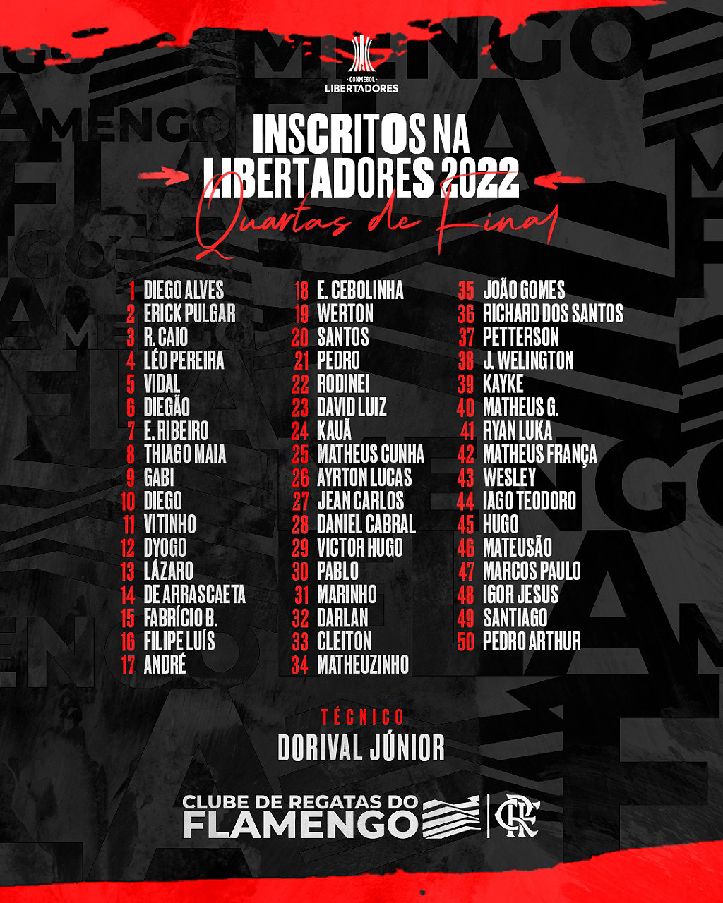 El equipo carioca anunció este domingo su plantel de 50 jugadores que disputará esa fase del torneo continental con los chilenos Arturo Vidal y Erick Pulgar en la lista.