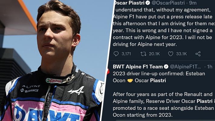 "Esto es un error y no he firmado un contrato con Alpine para 2023. No voy a pilotar para Alpine el próximo año", afirma Piastri.