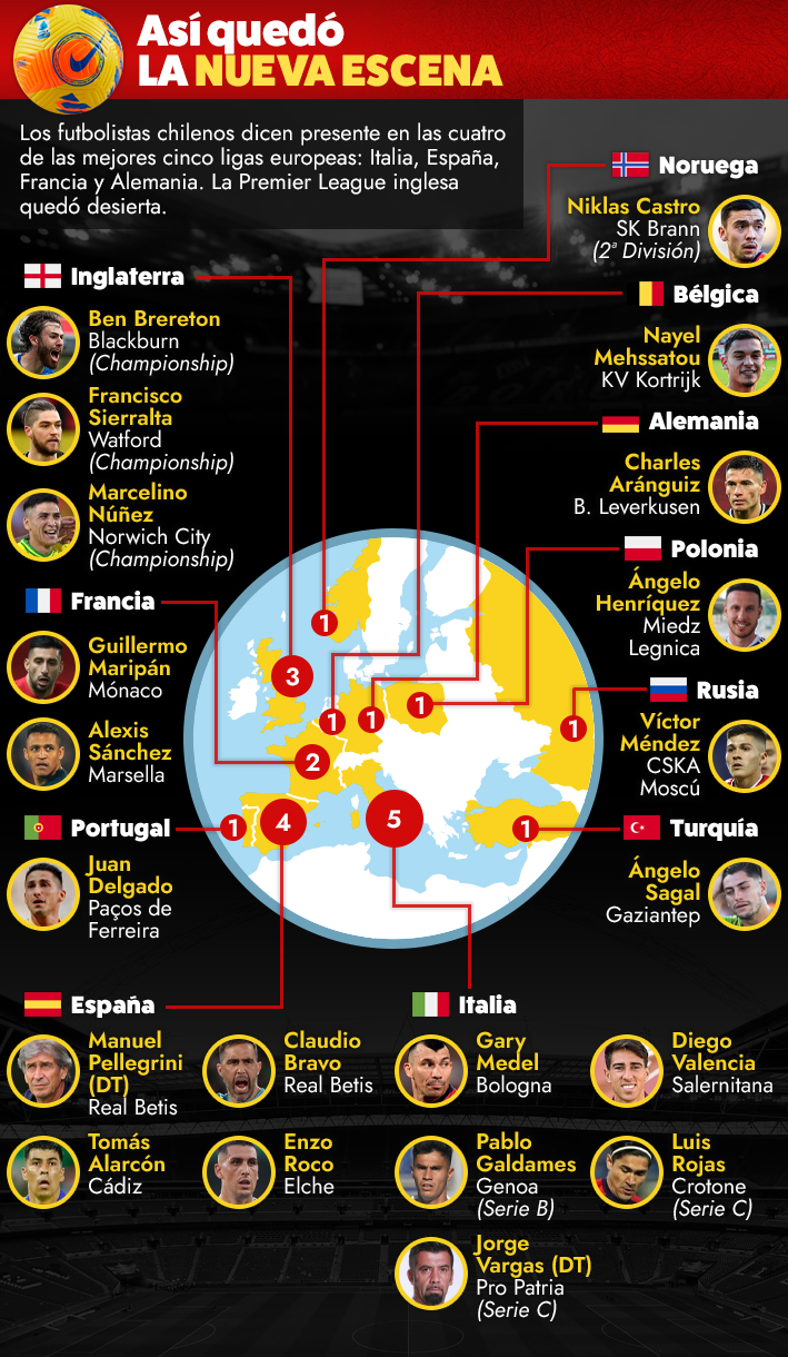 Cambia todo cambia. Bien lo saben los futbolistas chilenos. El mapa de los nacionales para esta temporada en el fútbol europeo se ha modificado bastante.