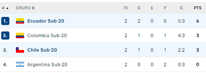 Con esto, Ecuador sube a lo alto con 6 puntos, mientras los chilenos quedan terceros con 3. Colombia, que venció 2-0 a Argentina, es segundo con 3 y mejor diferencia. Los trasandinos quedan colistas.