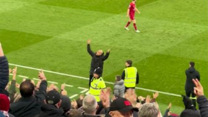 El entrenador del cuadro ciudadano reaccionó con una provocadora acción contra los hinchas luego que a su equipo le anularan un gol. El público celebró esa decisión con todo en Anfield y el DT respondió.