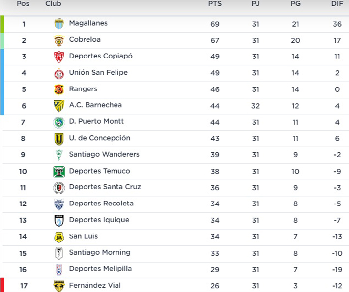 Cabe recordar que solo falta una fecha para que termine el torneo. Magallanes tiene la primera opción para ser campeón. Si vence a Recoleta, que se juega mantener la categoría, obtendrá el título. Cobreloa está al acecho.