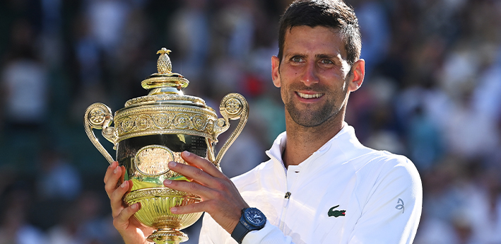 En Wimbledon, sigue siendo imbatible por cuarto año consecutivo. No ha perdido un partido allí desde su eliminación en cuartos de final en 2017, y ganó por séptima vez en su carrera. Queda a una victoria del récord masculino de Roger Federer, ocho, y a dos del récord histórico de Martina Navratilova, nueve.