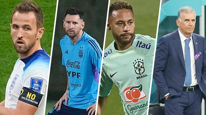 Harry Kane con un brazalete contra la discriminación, Lionel Messi, Neymar y Carlos Queiroz.