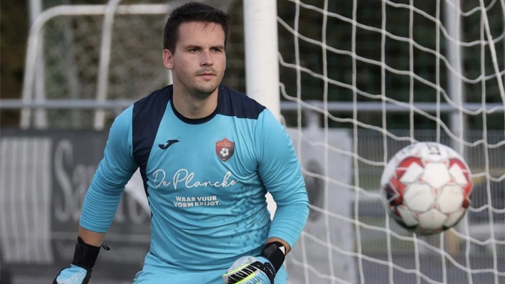 Se trata de Arne Espeel, de 25 años y quien tapaba para el Winkel Sport B. El golero le paró el disparo al futbolista del SK Westrozebeke y todo era alegría para su elenco.
