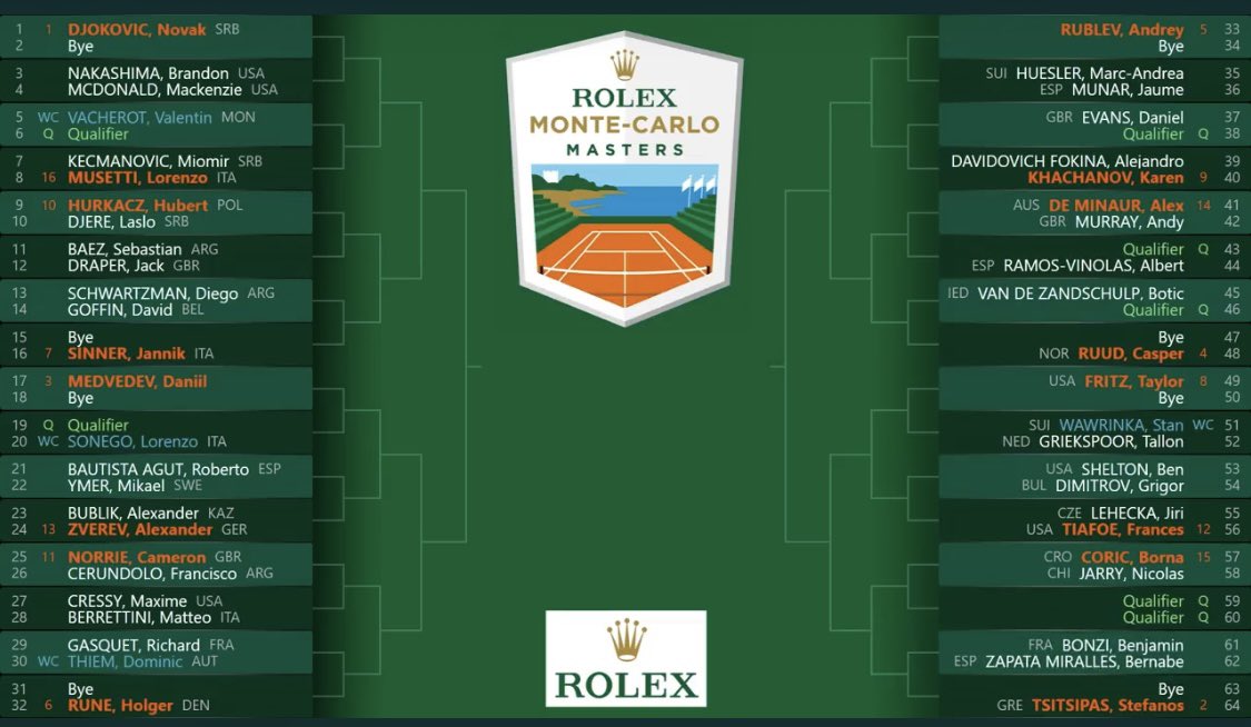 con el croata Borna Coric (20°), 15° favorito del tradicional certamen que se disputa en el Principado.