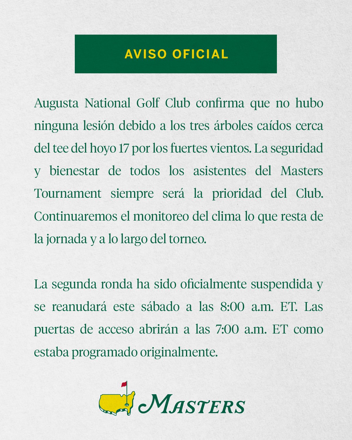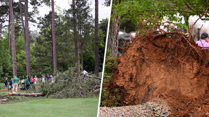 Cerca del hoyo 17, el viento derribó algunos árboles y estuvo cerca de generar una catástrofe en el primer major del año en el golf mundial.