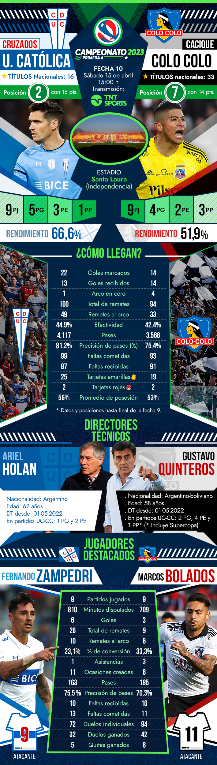 Ambos equipos se enfrentan este sábado en el estadio Santa Laura, un enfrentamiento que Ariel Holan nunca ha perdido como DT de la UC, mientras que Quinteros sólo tiene una derrota en la banca alba ante los universitarios.