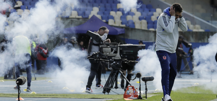 Escándalo en el fútbol chileno. Otro más. El clásico universitario entre la U y la Católica se detuvo a los 30 minutos del primer tiempo por el lanzamiento de fuegos artificiales.