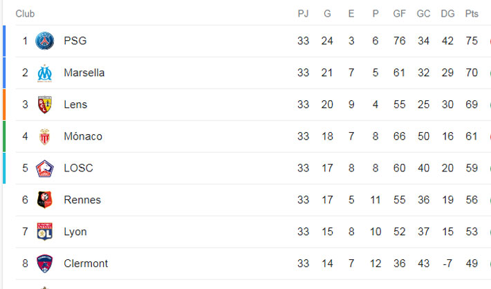 El elenco focense enfrentará este sábado al Lens, tercero y su más cercano perseguidor. Hoy apenas los separa 1 punto. Será fundamental para el título y para el puesto directo a la próxima Champions League.