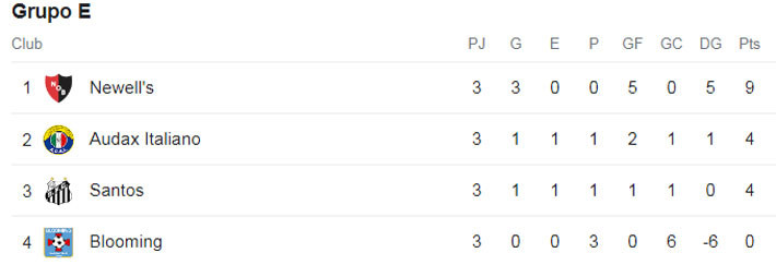 El conjunto chileno logró su primer triunfo en esta ronda y llegó a los 4 puntos, superando por diferencia de goles a Santos de Brasil. El líder es Newell's con 9 unidades y campaña perfecta.