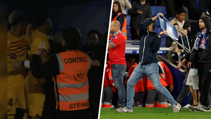 Los jugadores del cuadro azulgrana vencieron 4-2 al Espanyol en el clásico y festejaron en cancha la corona. Pero se armó conflicto, pues los hinchas invadieron el campo e intentaron agredir.