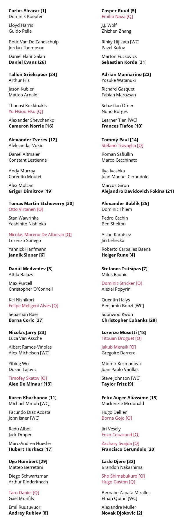 Si gana el chileno, se medirá en segunda ronda con el ganador de la llave entre el español Albert Ramos-Viñolas (88°) y el joven local estadounidense Alex Michelsen (127°). En una eventual tercera fase asoma el australiano Alex de Miñaur (13°) y ya en octavos de final aparece el ruso Daniil Medvedev (3°).