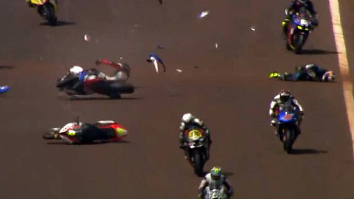 Durante una prueba de Moto 1000, Andre Verissimo Cardoso cayó de su vehículo al sufrir un resbalón en una de las primeras curvas.