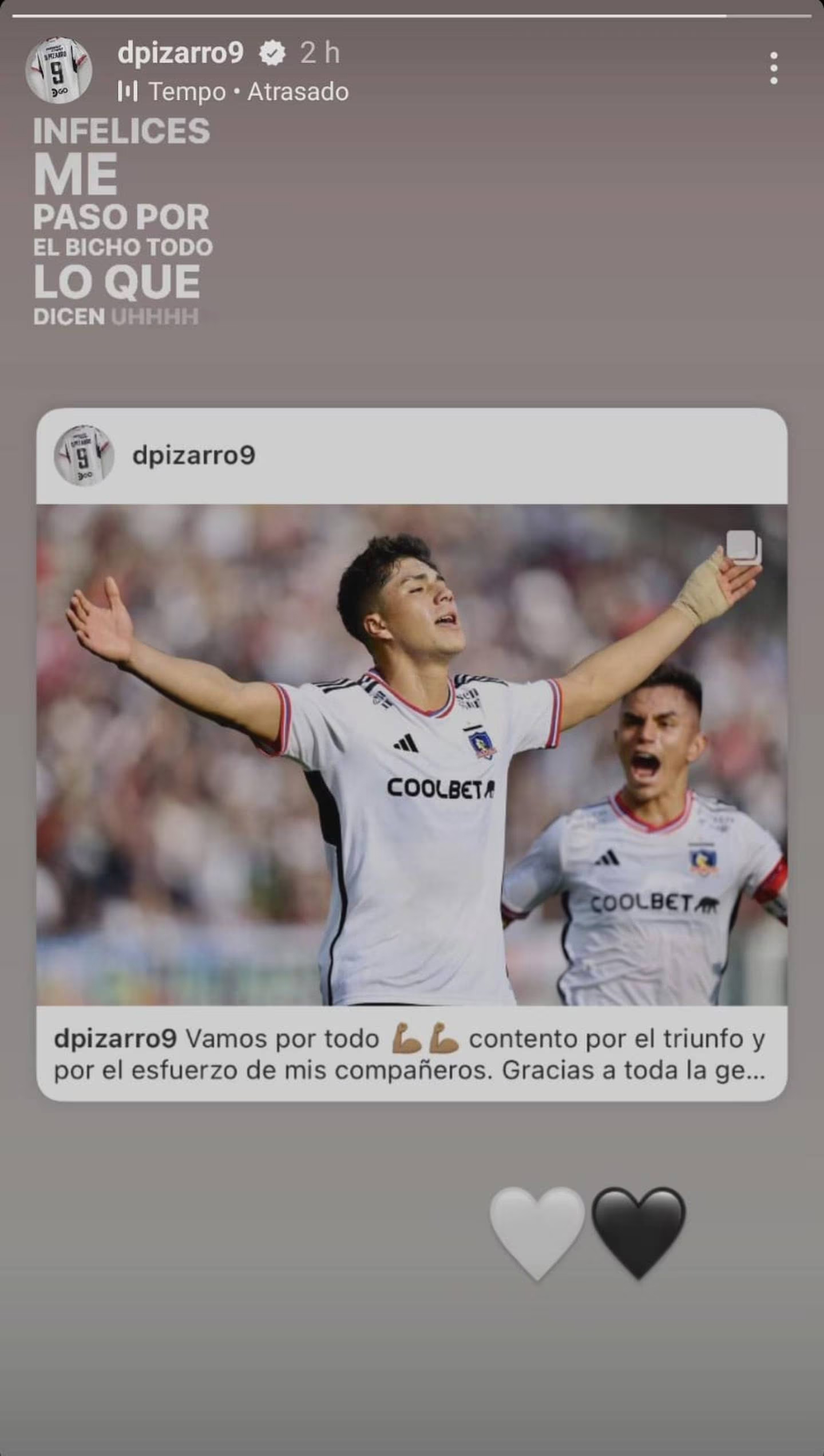 Ahora, tras la goleada ante Cobresal, publicó en redes sociales: "Vamos por todo. Contento por el triunfo y por el esfuerzo de mis compañeros. Gracias a toda la gente que nos fue a apoyar! Vamos todos juntos por más".