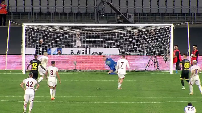 Aktürkoglu ejecutó el penal ante el Instanbulspor al minuto 36. Corrió y dio el pase suave al costado. Desde atrás apareció Icardi. Pero el argentino le pegó horrible y, con el arquero en el piso, tiró el balón fuera de manera increíble.