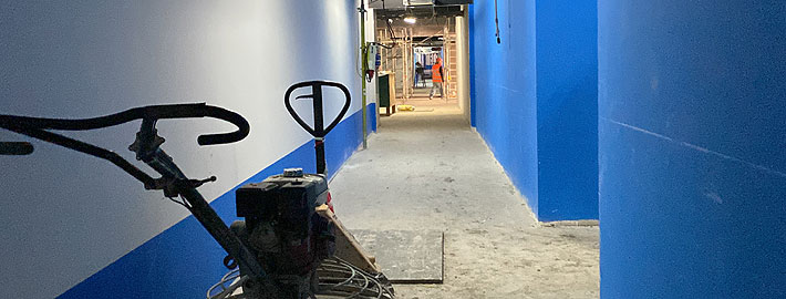 Toca salir de la cancha. Hay que pasar cuidadosamente por debajo de un andamio y recorrer un estrecho túnel. Esa es la conexión con la parte baja, la que lleva directo al camarín cruzado. Solo se puede observar desde la entrada. El piso está en pleno proceso. Las murallas son verdes, por ahora, y se aprecian algunos espacios para conexiones eléctricas. Por ese mismo pasillo caminarán los jugadores a la cancha. Incluso, antes de entrar al campo serán vistos por los hinchas gracias a un techo transparente que será instalado en esa zona.