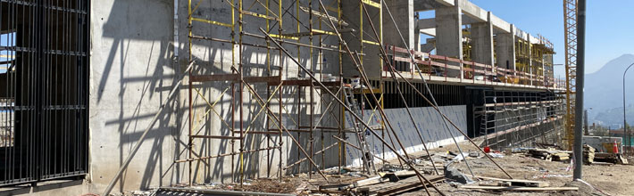 Poco antes el ruido de los camiones, metales, martillos y la cumbia se hacen sentir como cada mañana. Pero a la hora de la colación el silencio abunda. Al centro de todo una estructura que poco a poco deja ver su forma en distintos sectores. Es el nuevo San Carlos de Apoquindo, la "Fortaleza Cruzada" como lo apoda Universidad Católica.