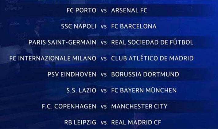 Entre los cruces destacados están Napoli-Barcelona, Lazio-Bayern y Porto Arsenal.