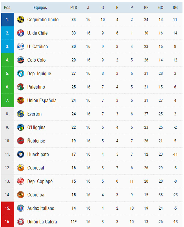 En tanto, los de Chillán se mantiene 9° con 19 unidades.