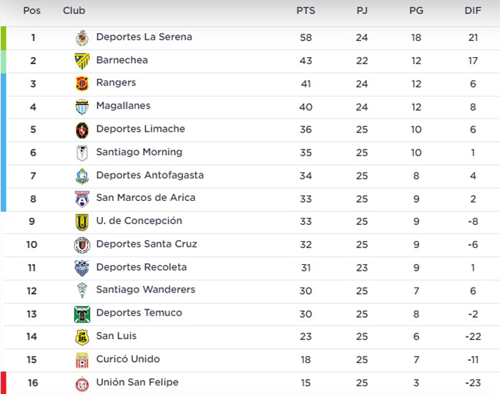 Hay que recordar que el líder del certamen, con mucha diferencia, es La Serena. Tiene 58 unidades.