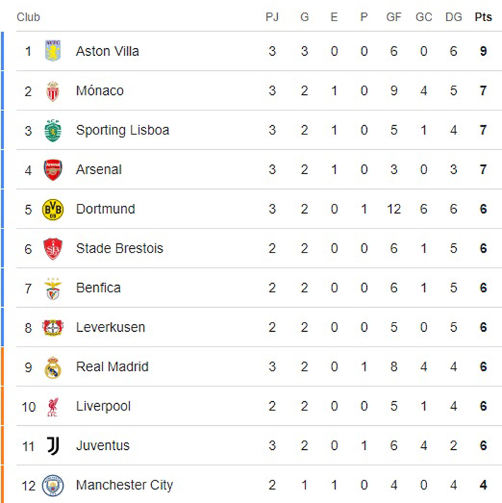 El sorprendente y único líder de la Champions, por ahora, es el Aston Villa. Este martes el elenco inglés derrotó 2-0 al Bologna y llegó a nueve puntos.