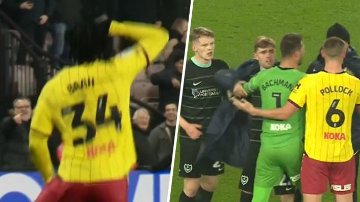 Los futbolistas del Portsmouth se indignaron y se fueron encima del alemán. Otros jugadores del Watford los tuvieron que contener para que la situación no pasara a mayores.