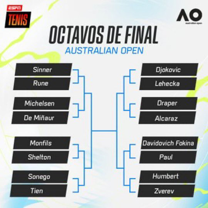 Ya quedaron definidos los cruces de octavos de final en el Abierto de Australia, que comenzarán este sábado en la noche de Chile.