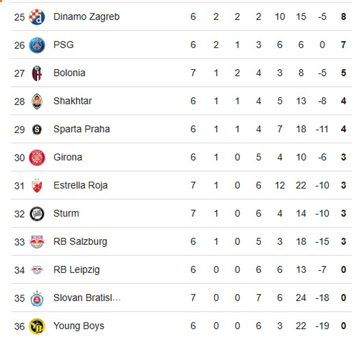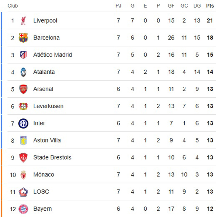 Hay que recordar que para este año hubo un cambio de formato. Se eliminaron los grupos y se instauró un sistema en que cada equipo disputa ocho partidos contra ocho rivales diferentes.