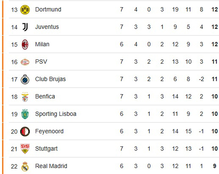 "Los ocho primeros equipos avanzarán automáticamente a octavos de final, mientras que los equipos situados entre el 9º y el 24º puesto disputarán una eliminatoria de play-offs a doble partido para asegurarse el pase a los octavos de final de la competición. Los equipos que terminen 25º o por debajo quedarán eliminados, sin acceso a la UEFA Europa League", explicó el ente rector del fútbol europeo.