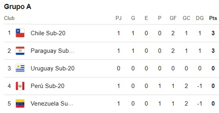 Revisa la tabla del Grupo A del Sudamericano Sub 20