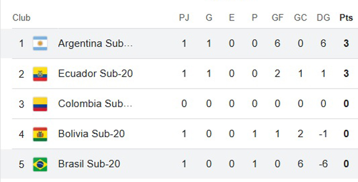 Revisa la tabla del Grupo A del Sudamericano Sub 20